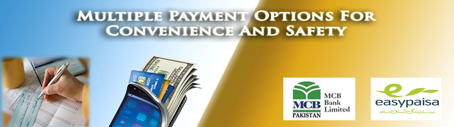 You can deposit payment in any of our following bank accounts from anywhere in Pakistan.
